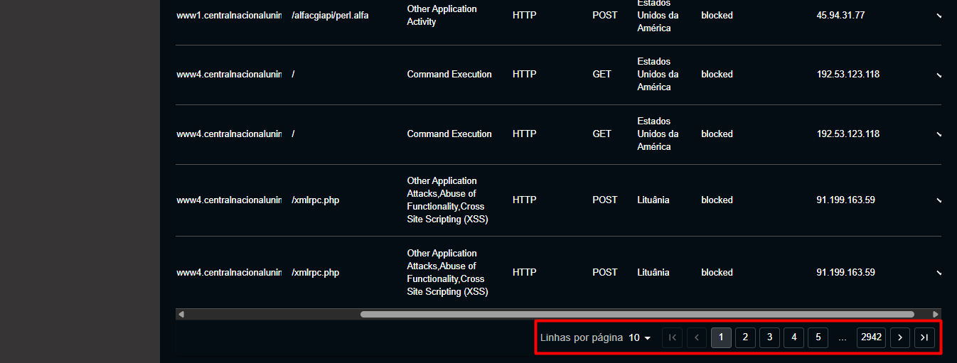 Escolher a quantidade de linhas por página (ex.: 10, 25, 50…).